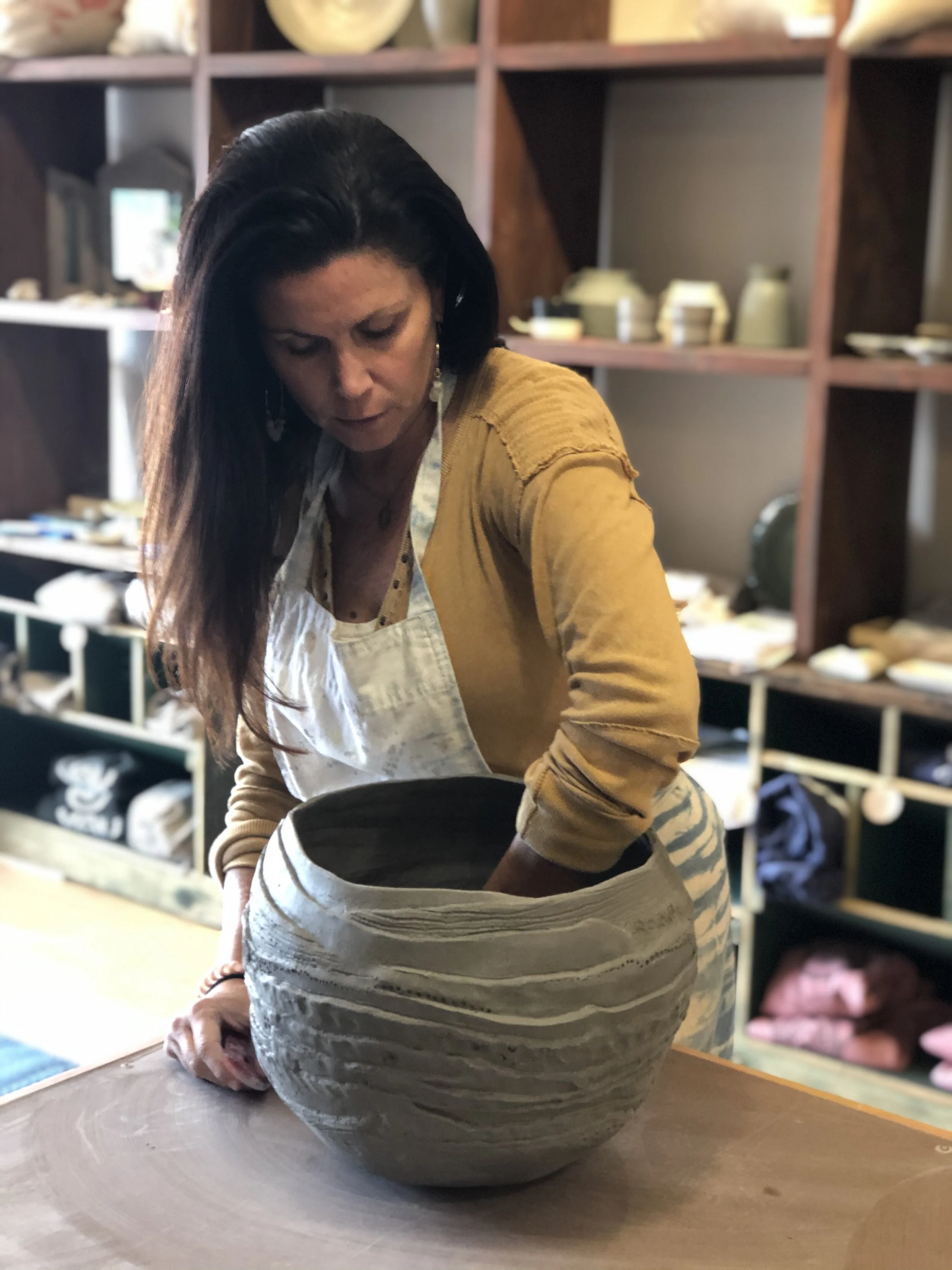 BHA pottery is handmade from the small shore town of Belmar, NJ. Artist , Jillian Manno, uses her evolving techniques influenced by coastal communities, travel, personal experiences , and love of interior design , to bring forth her current take on what she enjoys simply making. Each collection is a thought explored of functionality and purpose. Her work ranges in both simplicity of shape/ form and detail oriented fine lines with a unearthed carved, sculptural aspect. She enjoys balancing both styles with a ebb and flow feel representing modern rustic, and airy light coastal pottery. Current Pottery collections consists of : Home decor, planters of various shapes and sizes ,and tableware that”s worthy for casual functionality and statement chef worthy occasions. BHA Pottery by Jillian Manno is available as one of a kind purchases, custom, and certain collections by wholesale. When you purchase from BHA, you are purchasing from a mother of 5 and small family business full of eclectic ideas and experiences.